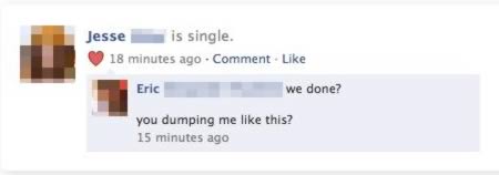 Σε μια έρευνα που έγινε το 2010 ανακαλύφθηκε ότι σε δείγμα 1000 χρηστών το 25% είχαν μάθει ότι χώρισαν από το status Των συντρόφων τους στο Facebook. Μάλιστα το 75% αυτών που έμαθαν τα κακά νέα ήταν άνδρες!