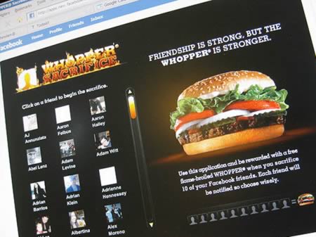 Κι όμως συνέβη! Το 2009 ένα εστιατόριο έκανε δώρο ένα σπέσιαλ χάμπουργκερ σε όποιον διέγραφε δέκα φίλους του. Μετά έστελνε μήνυμα σε αυτούς που είχαν διαγραφεί και έλεγε «Ο τάδε φίλος σου σε διέγραψε για ένα burger»!