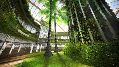 Τα φυτά που θα επιλεγούν θα είναι ανθεκτικά στις συνθήκες περιβάλλοντος στο εσωτερικό του κτιρίου και θα παράγουν μεγάλες ποσότητες οξυγόνου για να αυτοσυντηρούνται. Ο εσωτερικός κήπος θα λειτουργεί ως θερμοκήπιο και έχοντας αρκετό φυσικό φως, που φιλτράρεται σε όλα τα εσωτερικά δωμάτια, μειώνει την ανάγκη για φωτισμό.