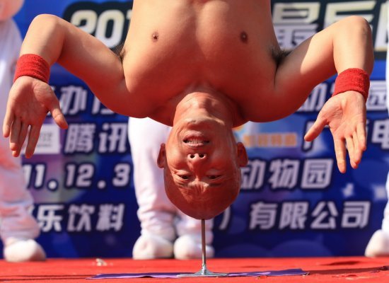 σαν τους περισσότερους άνδρες. Αυτό το λέμε γιατί έχει περάσει τα τελευταία 20 χρόνια ασκώντας ένα συγκεκριμένο τέχνασμα: την εξισορρόπηση στο κεφάλι του σε ένα καρφί για 10 δευτερόλεπτα.