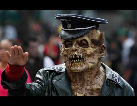 Άνθρωποι κάθε ηλικίας, φορώντας παλιά ρούχα και βαμμένοι με χρώματα που θύμιζαν αίμα, υποδήθηκαν για μία ημέρα τα ζόμπι, μουγκρίζοντας και περπατώντας όπως τα ζόμπι που βλέπουμε στις ταινίες.