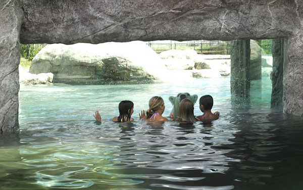 Στην ουσία τα παιδιά κολυμπούν μέσα σε μια τεράστια πισίνα, ενώ δεν εμπλέκονται καθόλου με τις αρκούδες, αφού υπάρχει μεταξύ τους ένα πάχους 10 ιντσών γυάλινο διαχωριστικό, το οποίο υψώνεται αρκετά μέτρα πάνω από το νερό και καταλήγει ασφαλές στη βάση της πισίνας.