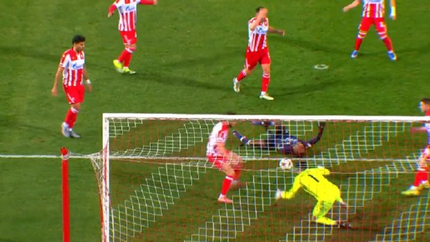 Ακολούθως σέντραρε στο δεύτερο δοκάρι και ο Γιακουμάκης που πετάχτηκε με προβολή έκανε το 0-1.