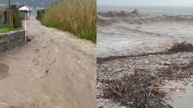 Ορμητικά νερά, φερτά υλικά και σκουπίδια σκέπασαν την ακτογραμμή, μεταμορφώνοντας το τοπίο και προκαλώντας σοβαρές ζημιές και απώλειες σε δρόμους και υποδομές.