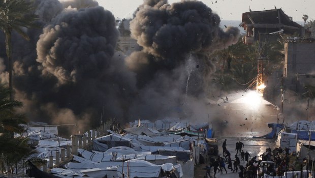 Μεταξύ του Γερμανού Φρίντριχ Μερτς, του Γάλλου Εμανουέλ Μακρόν και της Ιταλίδας Τζιόρτζια Μελόνι ― ηγέτες τριών από τις 10 μεγαλύτερες οικονομίες του κόσμου ― και των άλλων 24 που παρευρέθηκαν, μπορούσαν μόνο να κοιτάζουν αλλού, να τσακώνονται μεταξύ τους ή να προσφέρουν ελάχιστα πέρα από λόγια, καθώς οι βομβαρδισμοί, οι εκτοξεύσεις πυραύλων και οι δολοφονίες συνεχίζονταν.