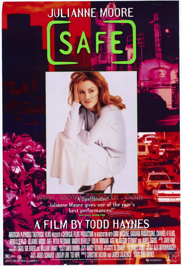 Το Safe είναι έργο εξαιρετικής αισθητικής τελειότητας, η οποία στηρίζει αποτελεσματικά το αμφίσημο πνεύμα του. Μια γυναίκα της εποχής μας, που τα έχει όλα: Νιάτα, ομορφιά, πλούτο, αρμονική και άνετη ζωή, σιγά-σιγά αρχίζει να «χάνεται», να αρρωσταίνει από μια αινιγματική ασθένεια. Ο Χέινς ενδιαφέρεται πάνω απ’ όλα για το συμβολικό υπόστρωμα. Αυτό το ρήγμα στην υπερβολικά λεία ομοιογένεια της μεγαλοαστικής διαβίωσης, αυτό το έλλειμμα αληθινής ζωής, που μεταλλάσσεται σε ψυχοσωματική ασθένεια. Ο υπαινιγμός και στο Έιτζ είναι προφανής. Κι έτσι αυτός ο βαθμιαίος εγκλεισμός της τρομοκρατημένης άρρωστης, αυτό το κενό αγάπης που ορίζεται στο τέλος, είναι συγχρόνως γελοίο και τραγικό. Κατοχυρώνεται από τη θαυμαστή ερμηνεία της μεγάλης Τζουλιάν Μουρ.